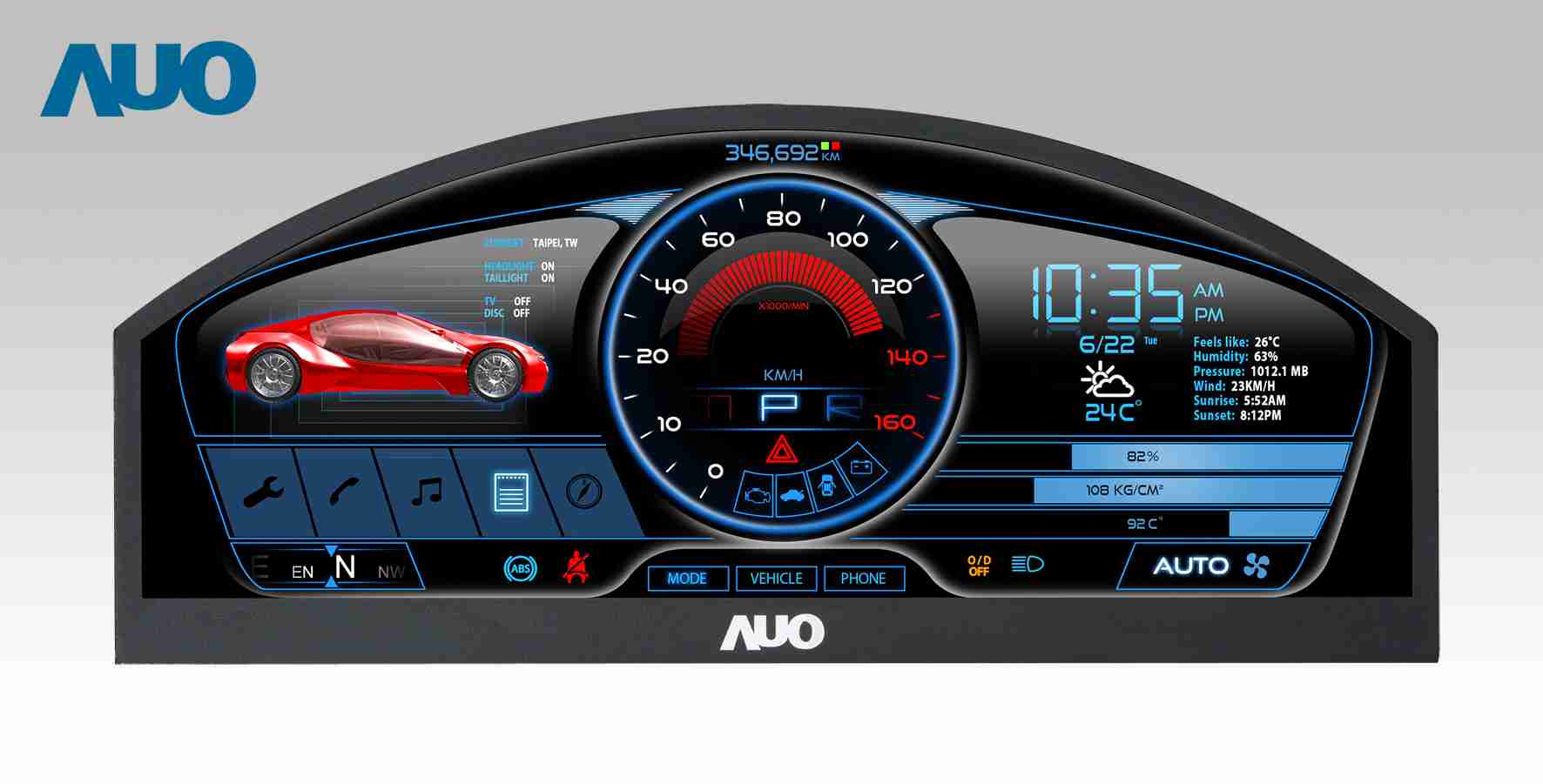 人生就是博 12.3吋超高解析异型切割车用面板,,拥有流线外观及精细画质