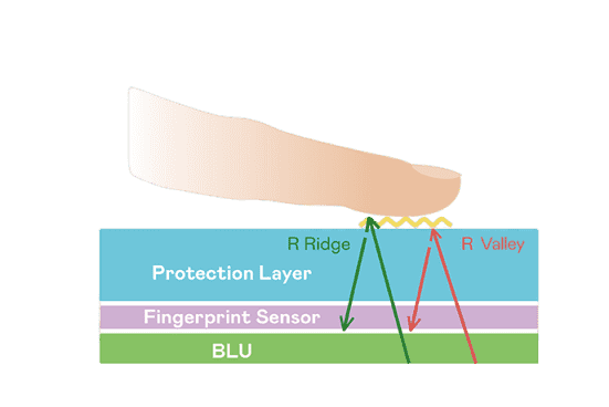 TFT 指纹扫描感测技术利用薄膜电晶体 (TFT) 当作光感测元件,,,,藉由非晶硅 (a-Si) 与低温多晶硅(LTPS)既有光电转换特性对不同波段光源进行吸收,,使感测 IC 读取阵列感测元件的光漏电差异,,,,转换成数位灰阶影像。。。